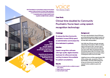 Clinical time doubled by Community Psychiatric Nurse team using speech recognition technology