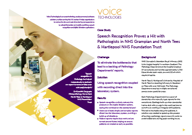 Speech Recognition proves a hit with pathologists in NHS Grampian and North Tees & Hartlepool NHS Foundation Trust
