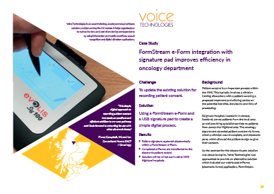 FormStream e-Form integration with signature pad improves efficiency in oncology department