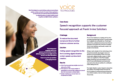 Speech recognition from Voice Technologies helps Frank Irvine Solicitors