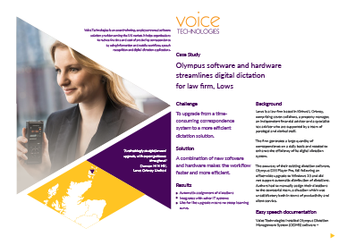 Olympus software and hardware streamlines digital dictation for law firm, Lows