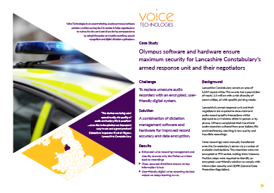 Olympus software and hardware ensure maximum security for Lancashire Constabulary’s armed response unit and their negotiators
